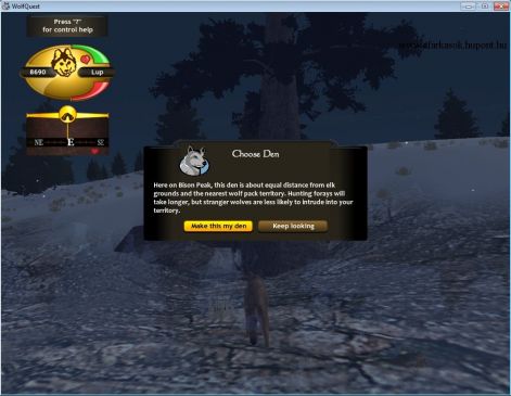 -Szintén 3 lehetőség:New Games(új farkas készítése), Amethyst Mountain(itt van a farkasod ha elmentetted), Slough Creek(ha van párod akkor itt lehetnek kölykeitek is)