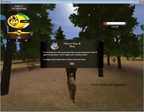 Nem maradhatsz ezen a helyen örökké. Nemsokára el kell vándorolnod a völgyön át egy új otthonba ahol a nyarat fogod tölteni. A kölykeid még nem elég nagyok, ezért etetned kell őket addig amíg 15 font lesz a súlyuk. Ha nyomsz egy "Esc"-et ott a "Pack Stats" menüpontnál meg tudod nézni a kölykök súlyát.